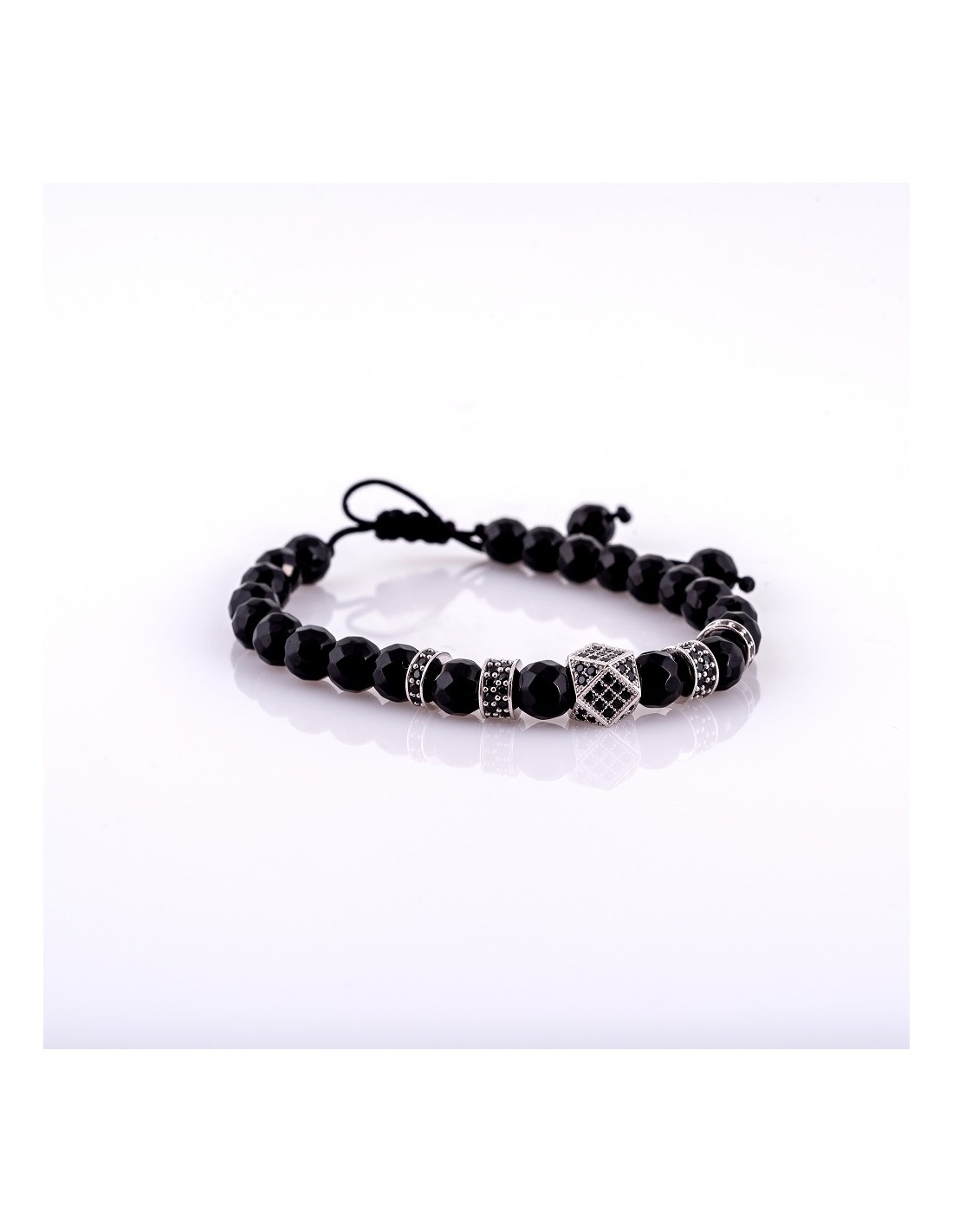 Bratara din argint,cu zirconii negre si bile onix semipretioase lucioase.