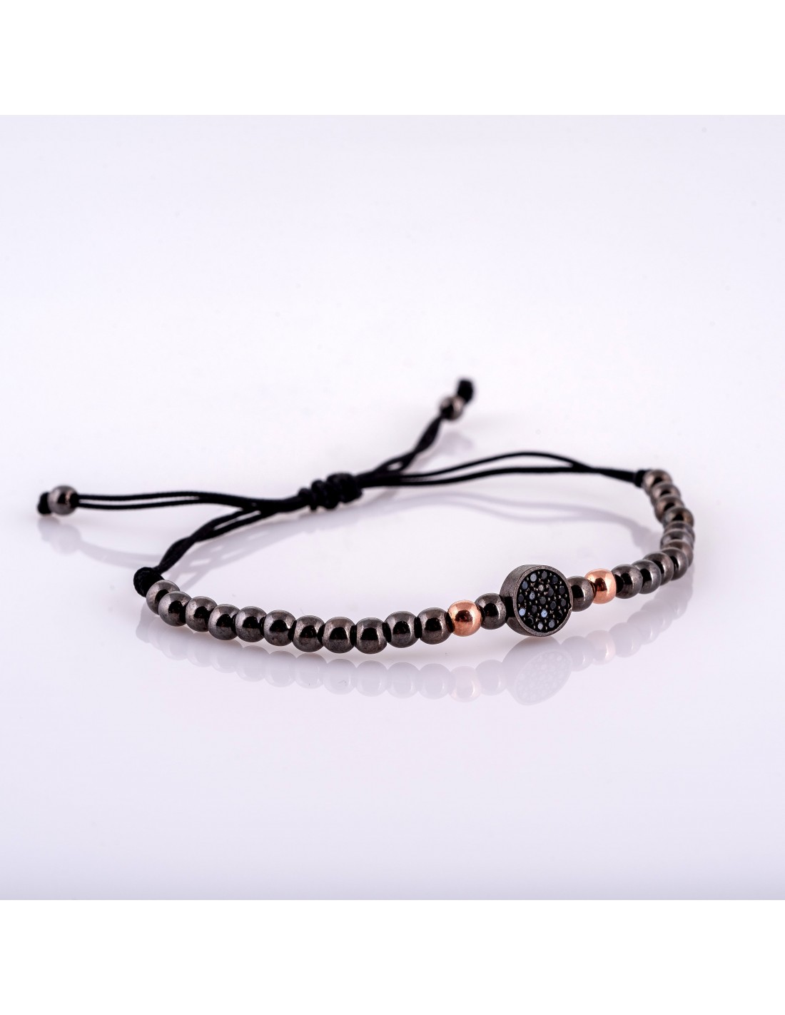 Bratara realizata manual pe snur negru cu pietre semipretioase de tip Onix mat cu diametrul de 6 mm si bilute rodiate.
