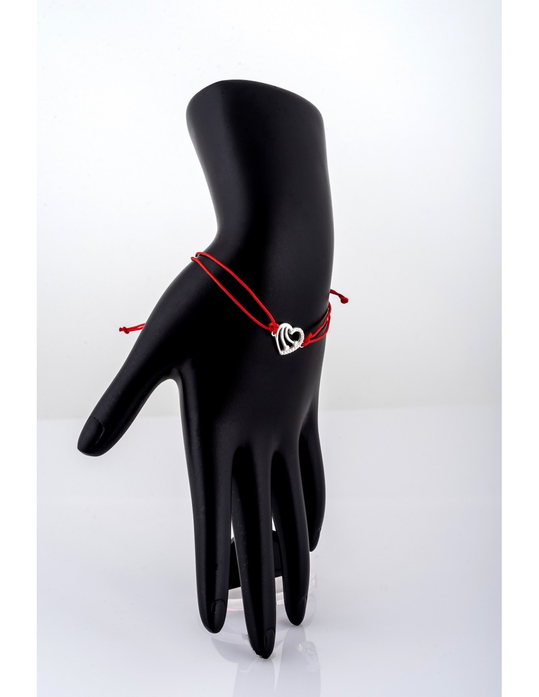 Bratara snur rosu si argint cu pandantiv inimioara,ajustabila.