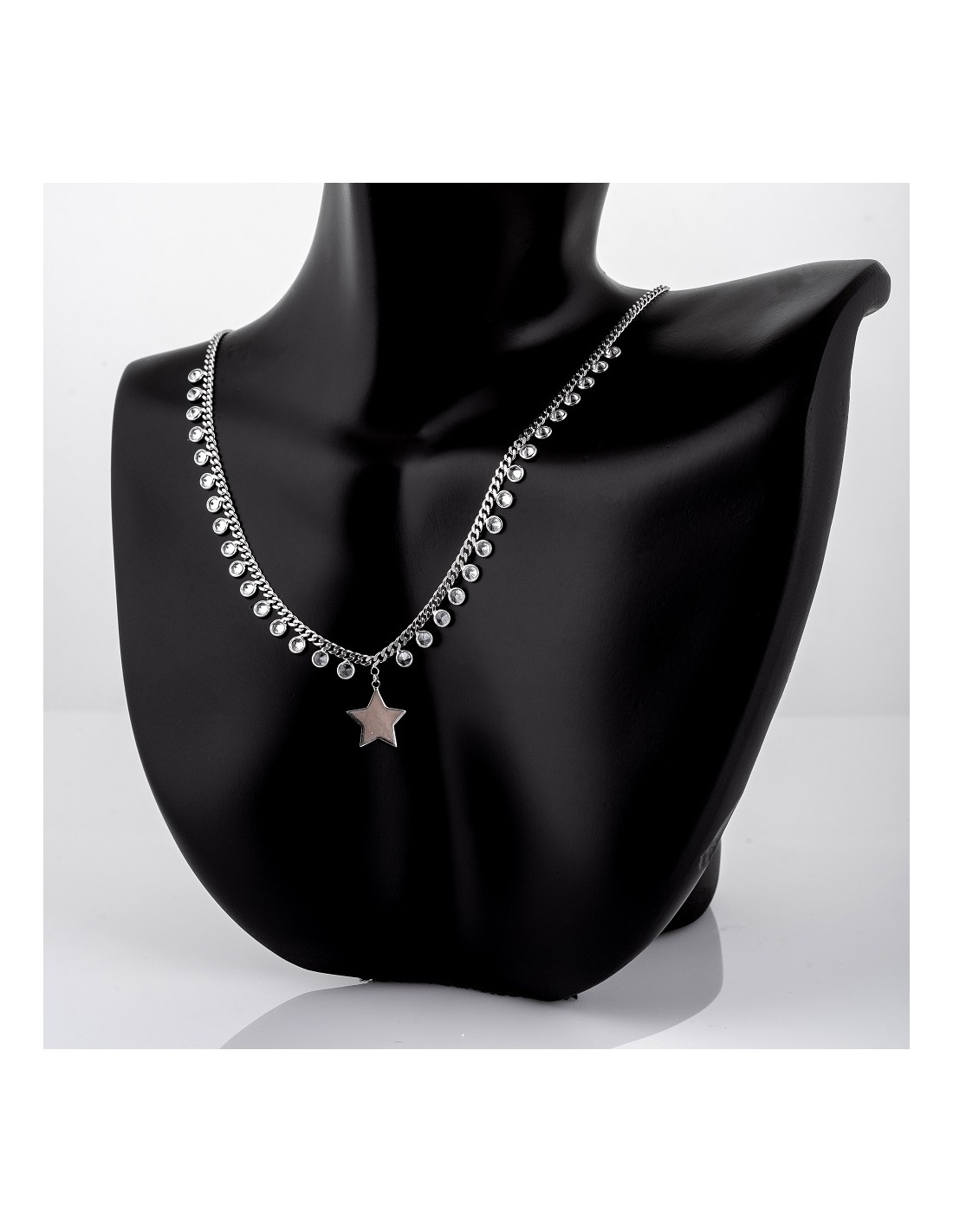Colier din argint cu pietricele din zirconiu alb si pandantiv stea.